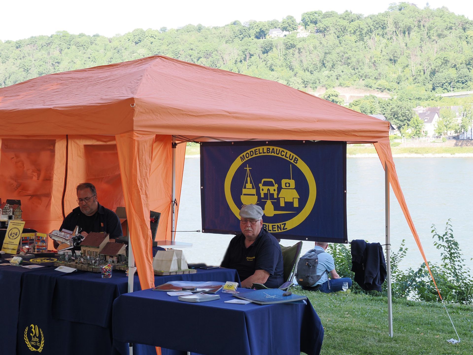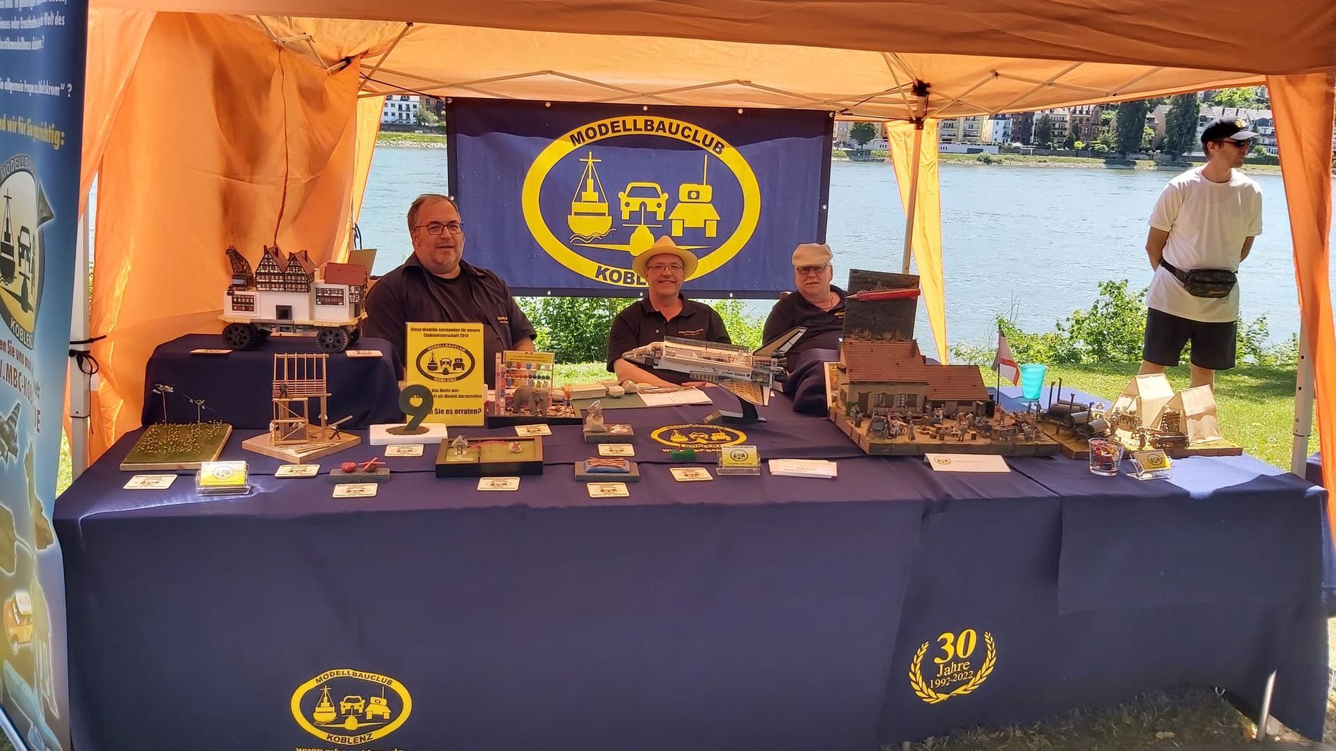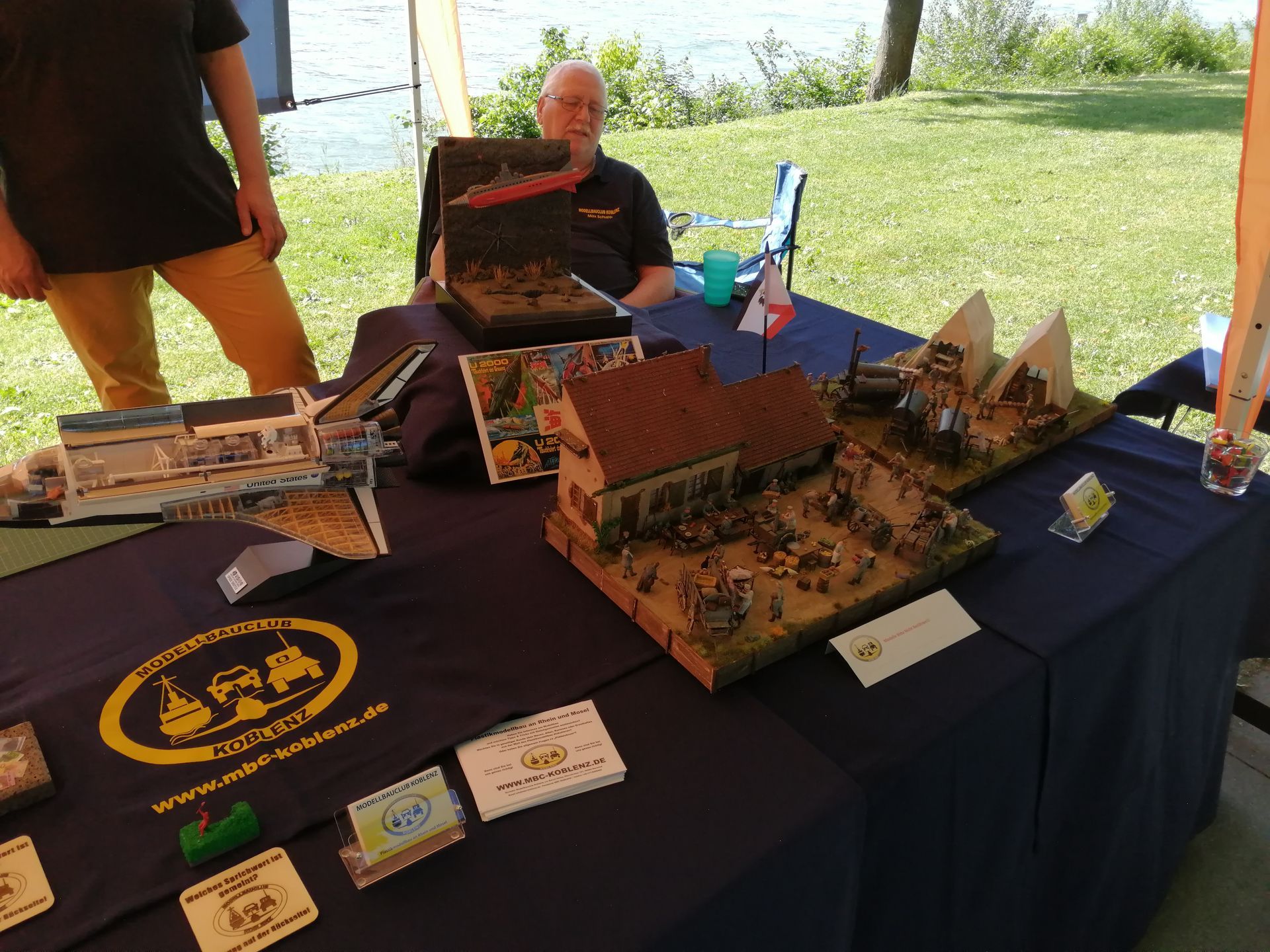 Auch wir, der Modellbauclub Koblenz, waren mit drei Kollegen und einem Präsentationsstand vor Ort. Es wurden einige fertige Modelle und Dioramen aus der Kaiserzeit gezeigt und die Besucher konnten den Kollegen beim Basteln über die Schulter sehen.