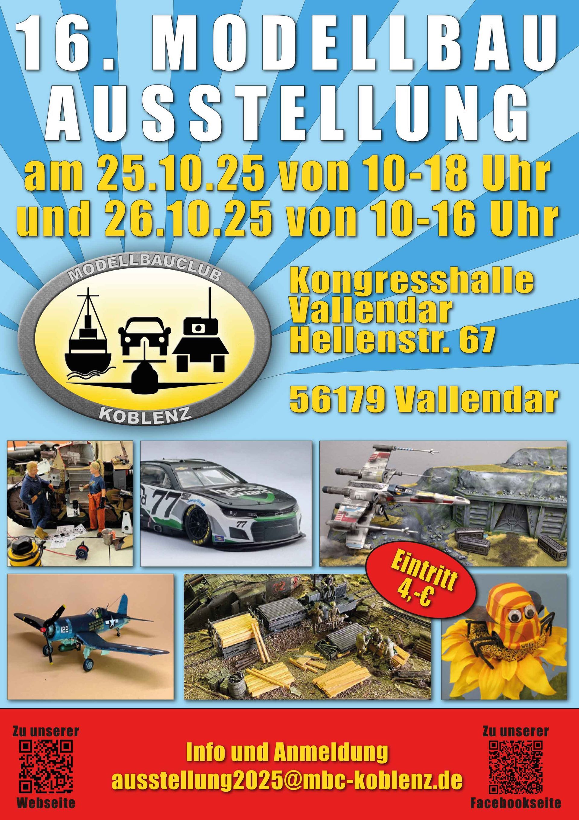 Am 25.10.2025 und 26.10.2025 veranstaltet der Modellbauclub Koblenz seine 16. Modellbauausstelllung in der Stadt- und Kongresshalle Vallendar.