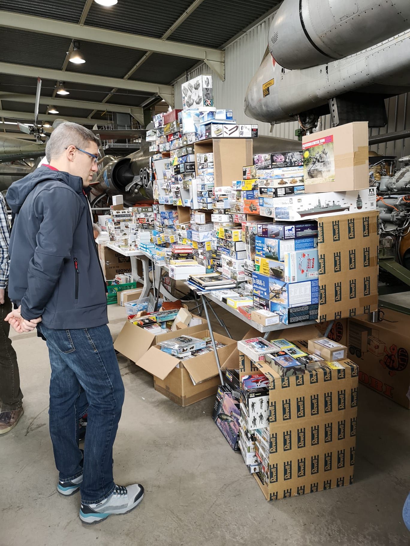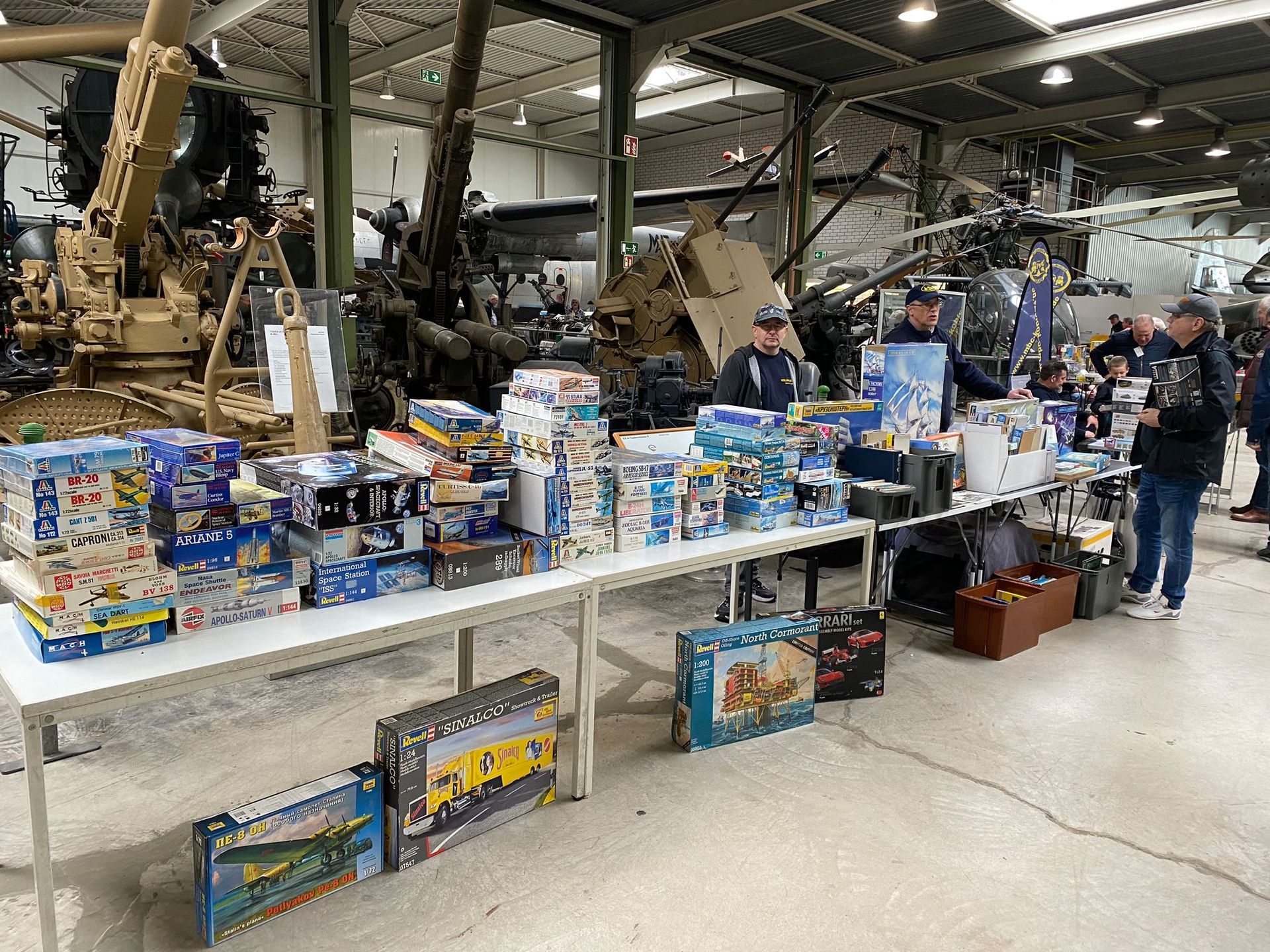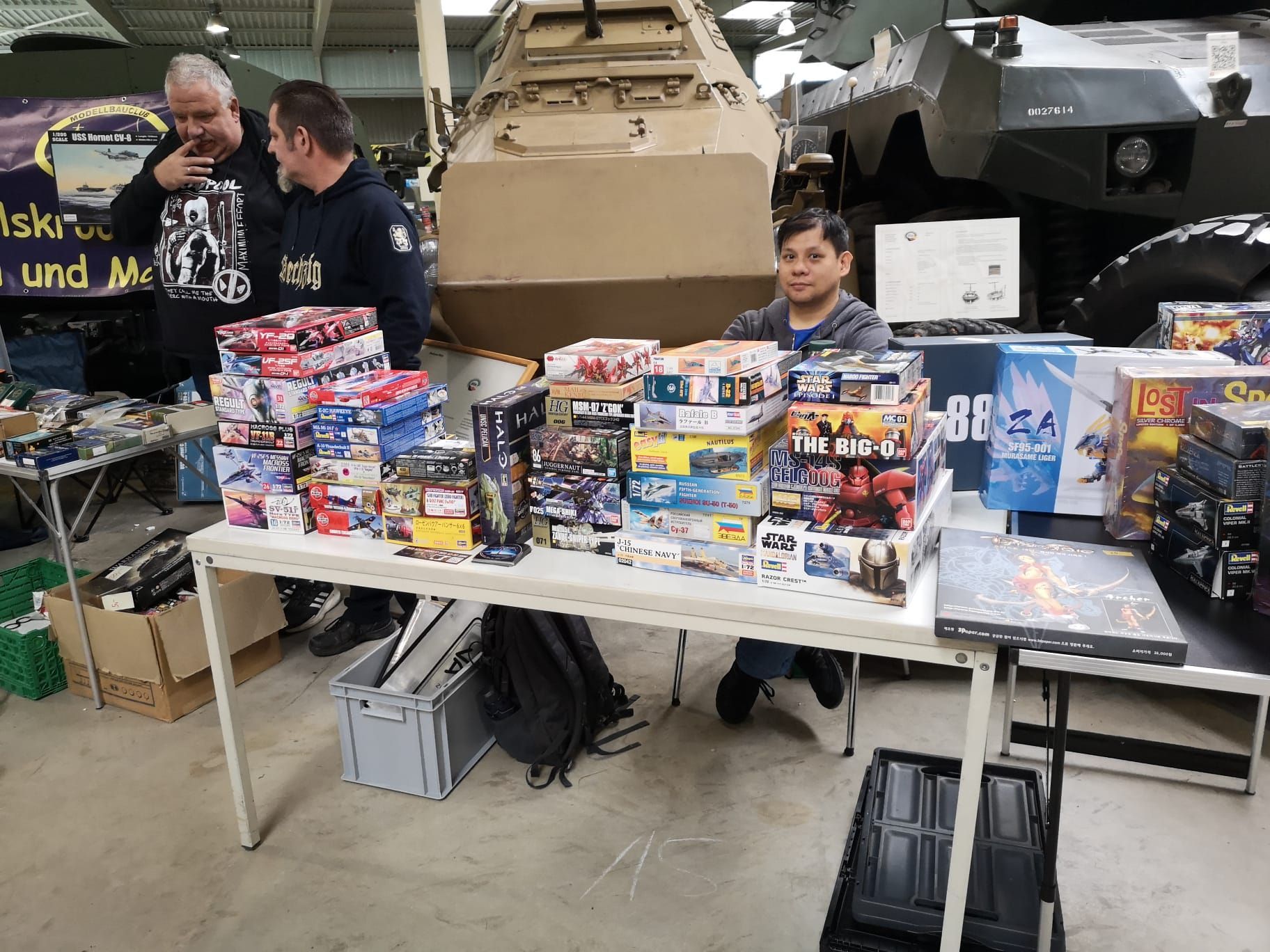 Zwischen all den beeindruckenden Kanonen, Panzern, Flugzeugen, Hubschraubern, Sonderfahrzeugen und Prototypen fand schließlich der 8. Modellbauflohmarkt statt. 50 Verkäufer aus dem hohen Norden, dem weiten Osten, dem tiefen Süden und dem nahen Westen boten ihre Modellbau-Überbestände, Bausätze, Zubehör und Fachliteratur an. Auf insgesamt 104 Metern Verkaufstischen gab es für die Besucher jede Menge zu entdecken – und natürlich zu handeln! Es wurde gesucht, gefeilscht und gehandelt, während Modelle, Bausätze und Bücher den Besitzer wechselten. Die Gänge füllten sich mit Menschen, die große Taschen und oft ganze Berge von Bausätzen mit sich führten.