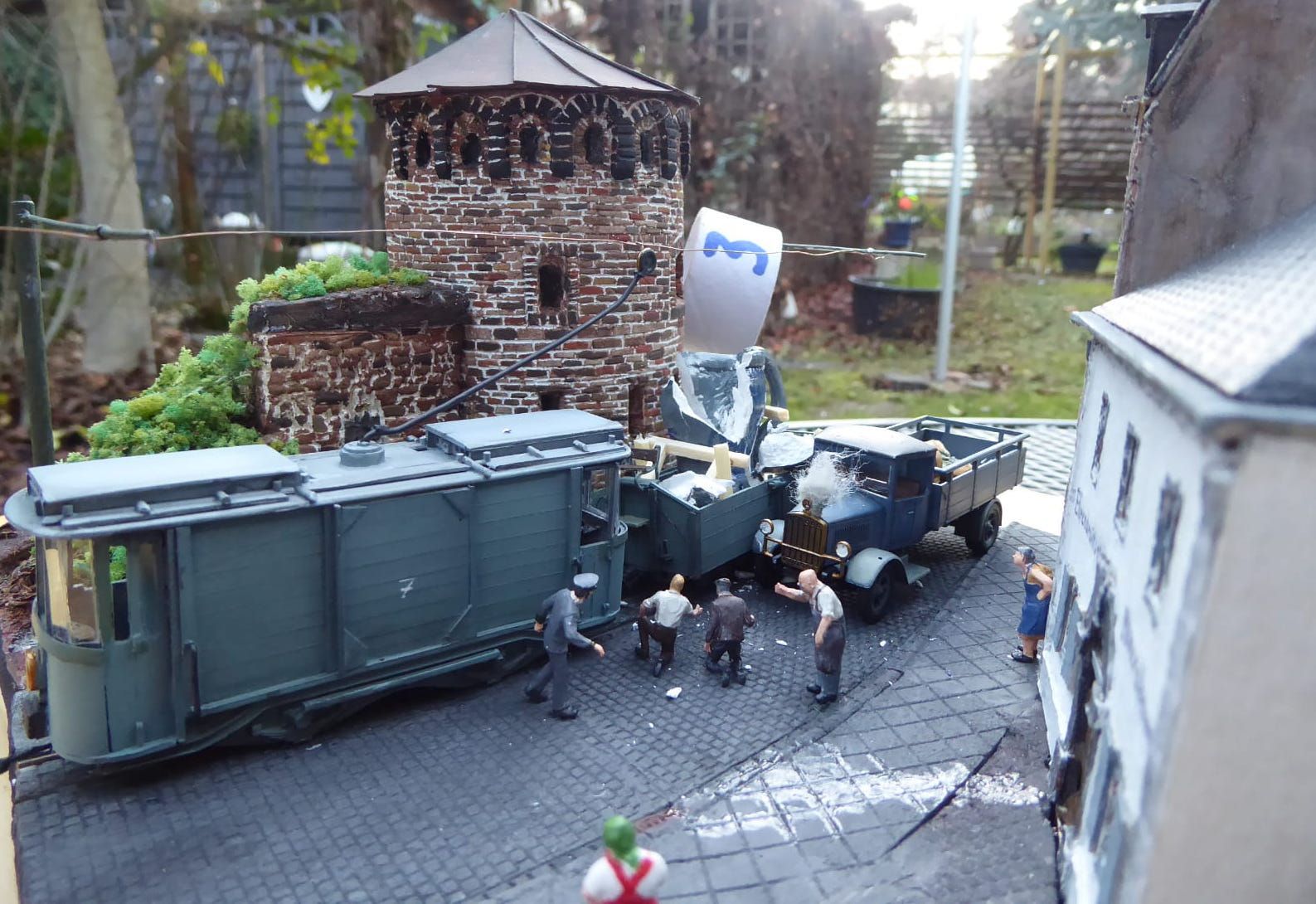 Dazu baute er anhand von historischen Fotos den „Dähler Born“ im Koblenzer Stadtteil Ehrenbreitstein detailgetreu nach. Der „Dähler Born“ ist eine öffentlich zugängliche Wasserquelle, die sich in einem Haus befindet. Aber auch das ehemalige Stadttor von Ehrenbreitstein hat er nachgebaut und einen Wagen der ehemaligen Koblenzer Straßenbahn. Alles zusammen ergibt den verdienten Sieg. Herzlichen Glückwunsch!!