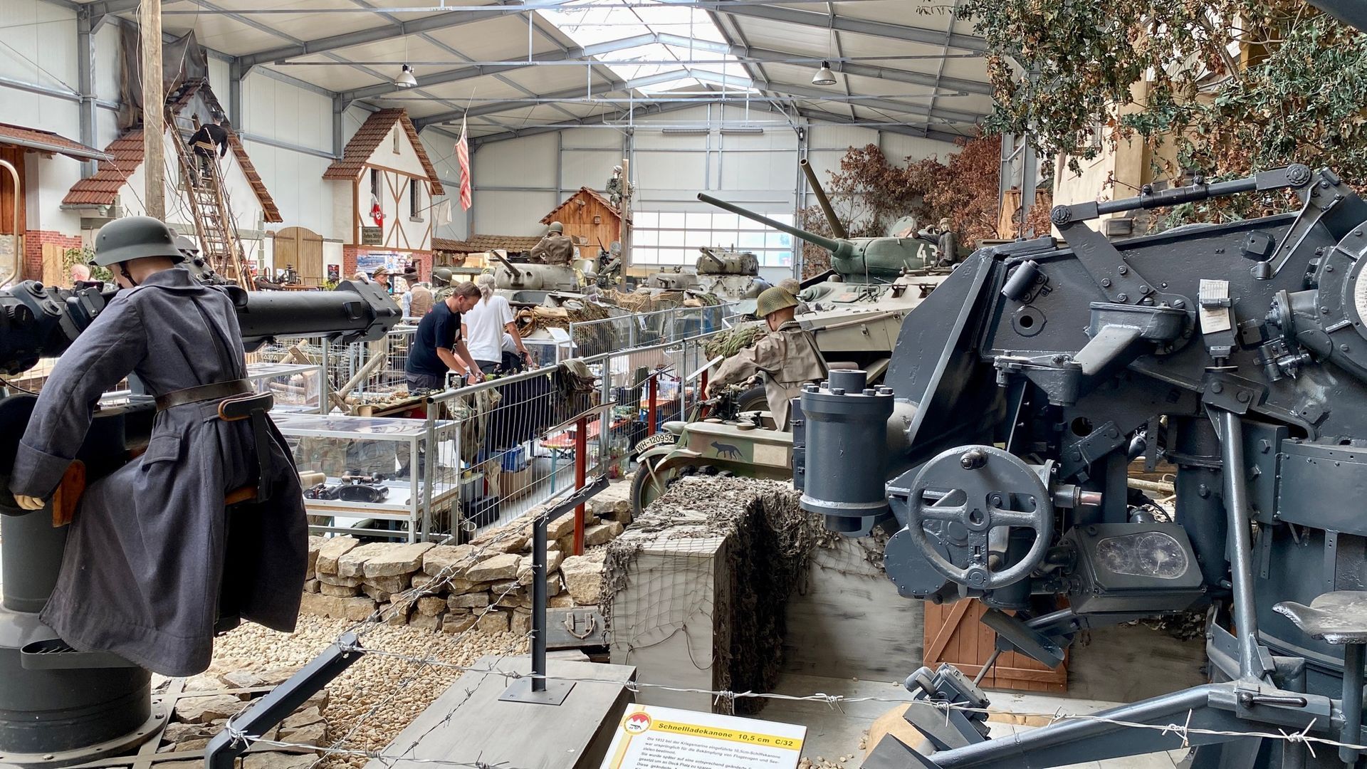 Die Halle in der wir untergekommen waren bot einigen Schutz vor der brüteten Hitze die an beiden Tagen herrschte (35 Grad) und erinnerte uns stark an die uns wohl vertraute WTS saßen wir doch mitten unter den Ausstellungsexponaten.
