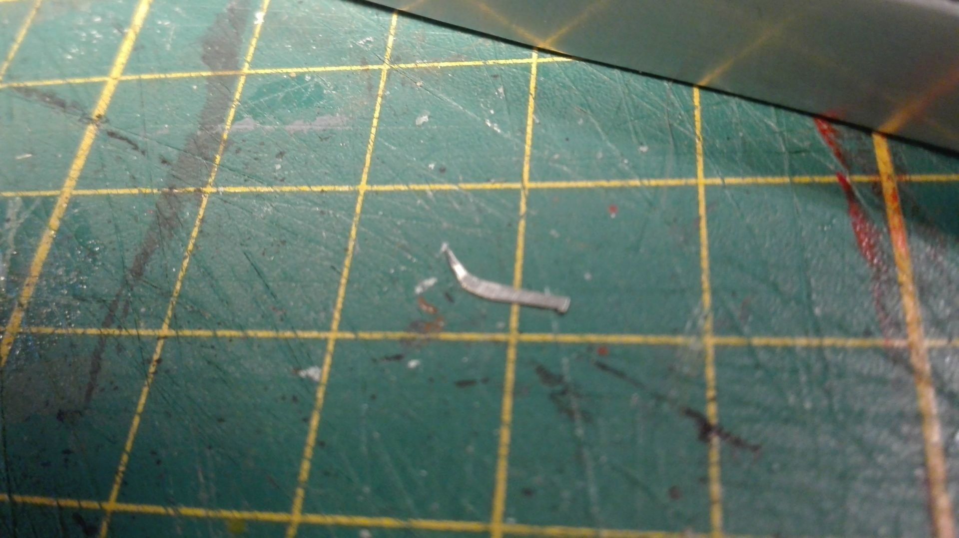 Zum Schluss kamen die Kufen dran (Bild 13). Aus den Resten eine Messingätzteilbogens konnte ich mit einer Nagelschere die Kufen einfach ausschneiden. Es waren zwar mehrere Versuche nötig aber das Endergebnis ist in Ordnung. Mit dem Anbau der Kufen war das Bötchen fertig (Bild 14).